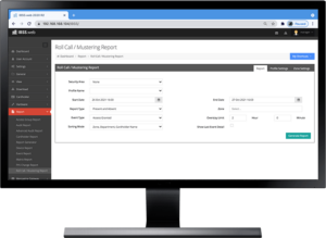 Roll Call Report from IBSSweb allows user to generate reports based on the event transaction database, with configurable options including zone, entry/exit devices, presence/absence, and time/date.